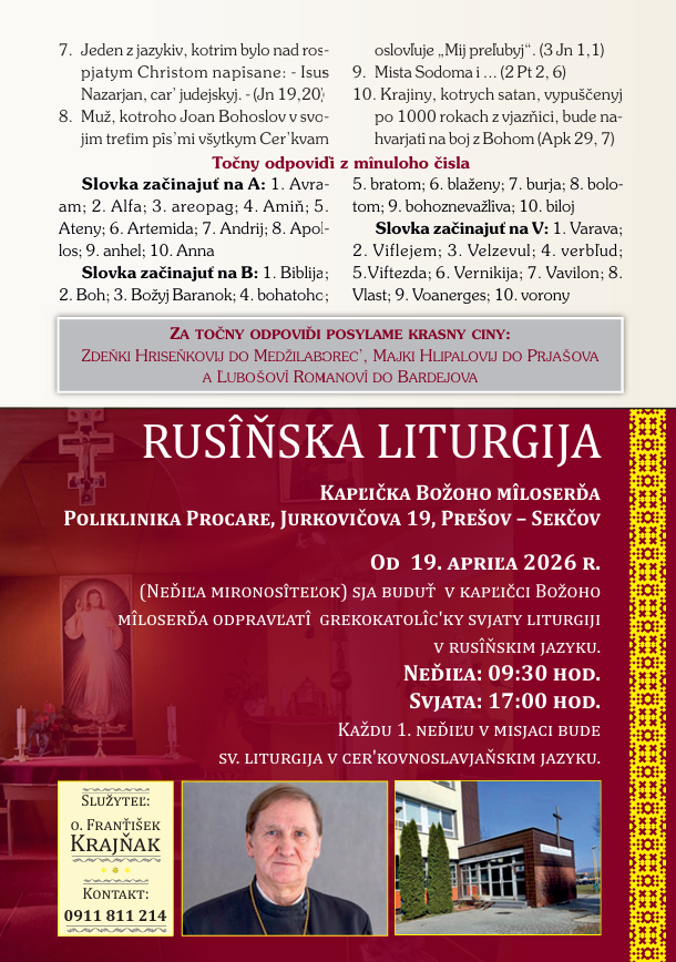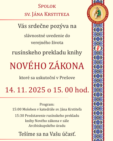Čislo bankovoho učtu Obščestva sv. Joana Krestiteľa: SK92 0900 0000 0004 6241 9172