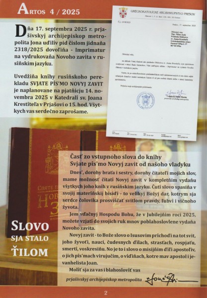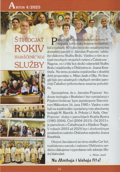 Spolok sv. Jána Krstiteľa vydáva časopis Artos